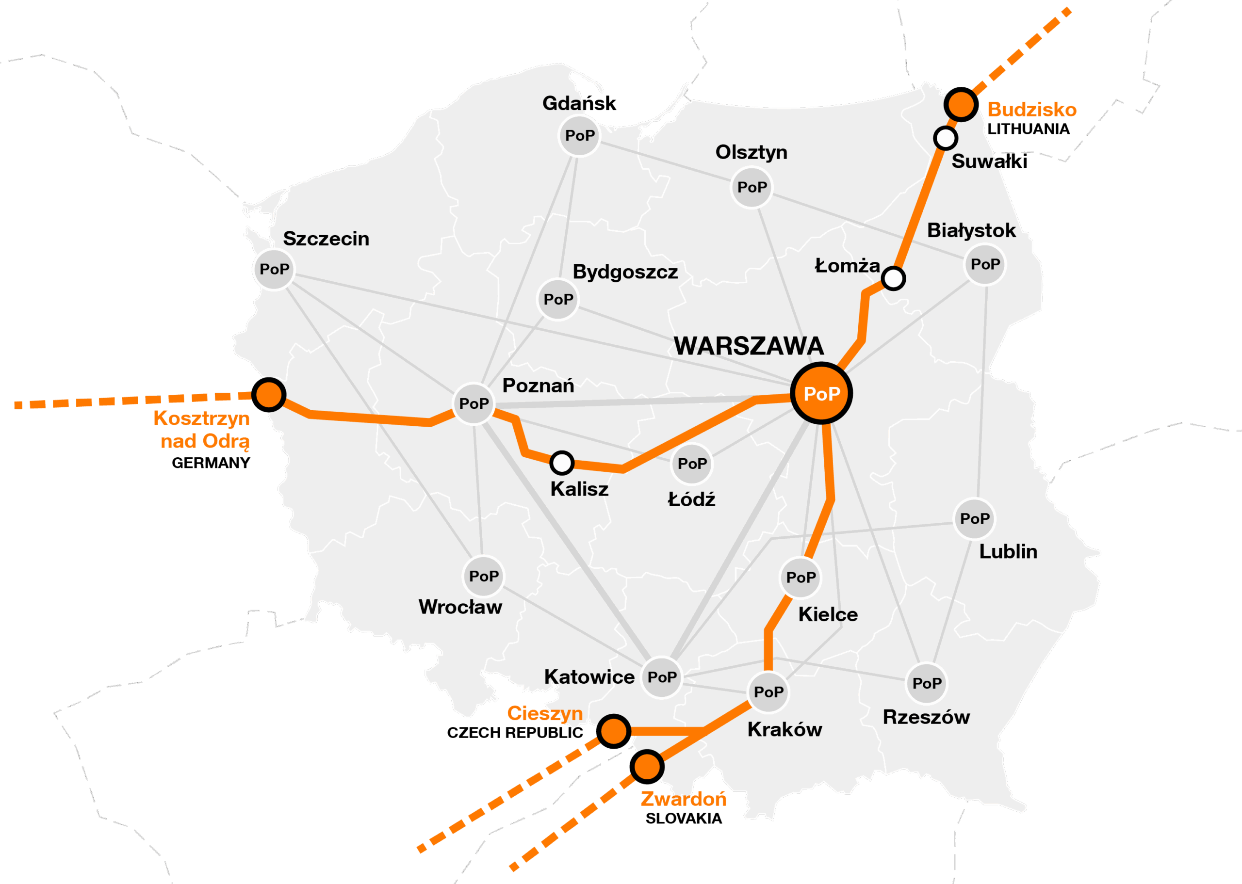 Thanks to funding from the EU Connecting Europe Facility (CEF) program, we are developing new fiber optic routes through Poland connecting Germany, Czech Republic, Slovakia and Lithuania over CEE hub in Warsaw.