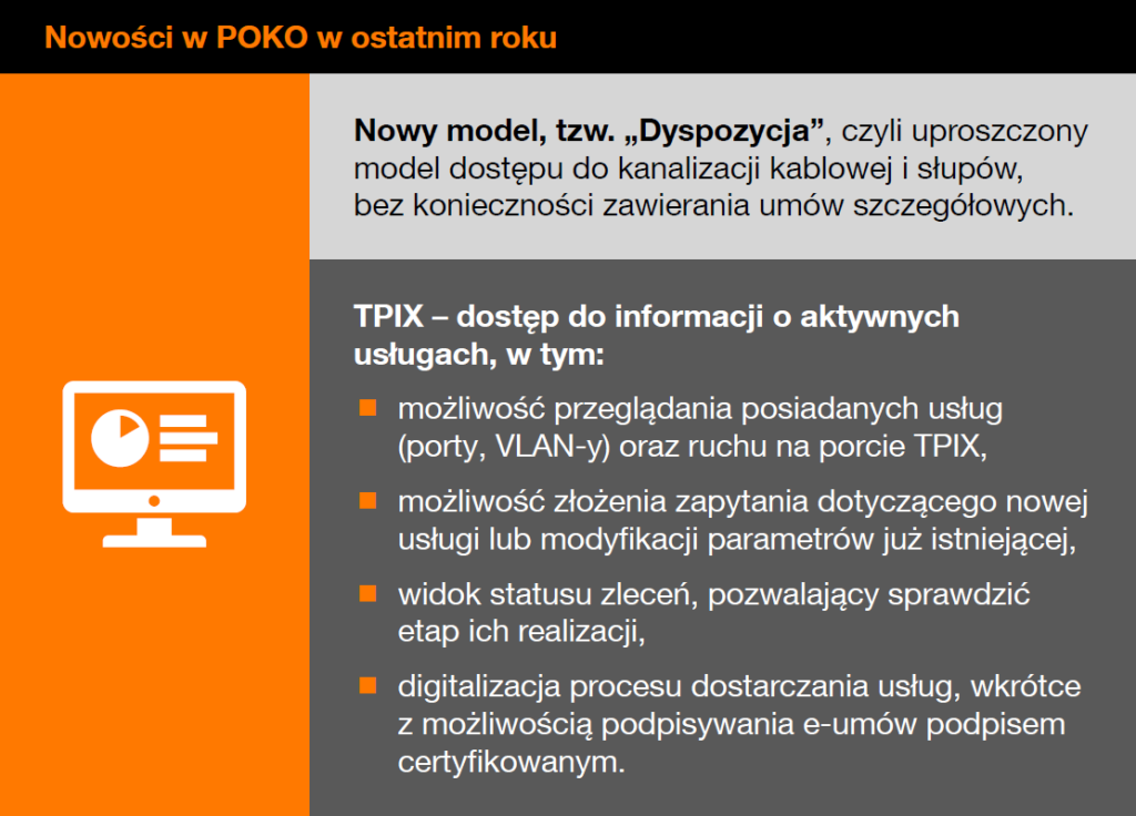 Jedną z głównych zalet POKO jest uproszczenie procesów i skrócenie czasu potrzebnego na uzyskanie formalnego dostępu do infrastruktury Orange.