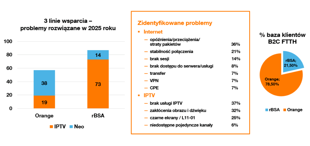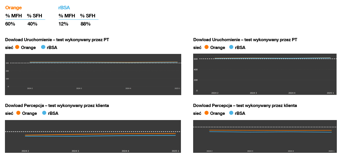 Od początku projektu mierzymy się z opiniami, że jakość usług na sieci rBSA nie jest taka sama jak sieci Orange. Na sieci rBSA świadczymy jednak dokładnie takie same usługi jak na sieci własnej, a pomiary speed-testów, wykonywane przez te same ekipy i według tej samej metodologii na obu sieciach, dają podobne, najczęściej identyczne wyniki. Parametry jakościowe sieci rBSA i Orange są takie same.