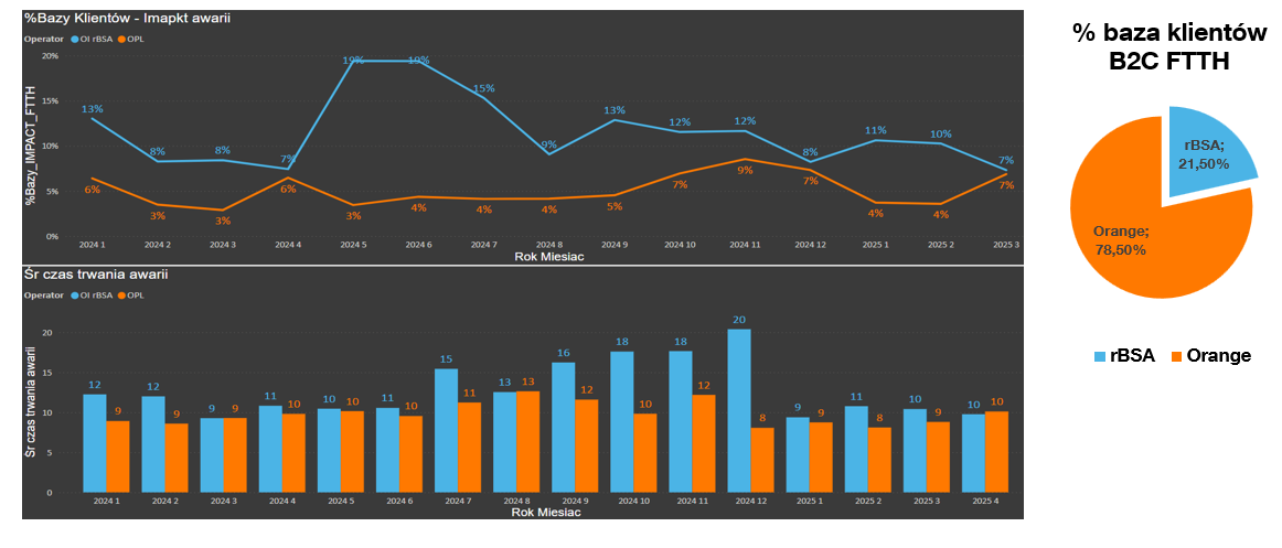 Dodatkowo, analizujemy rozkład procentowy klientów korzystających z sieci własnej i rBSA.