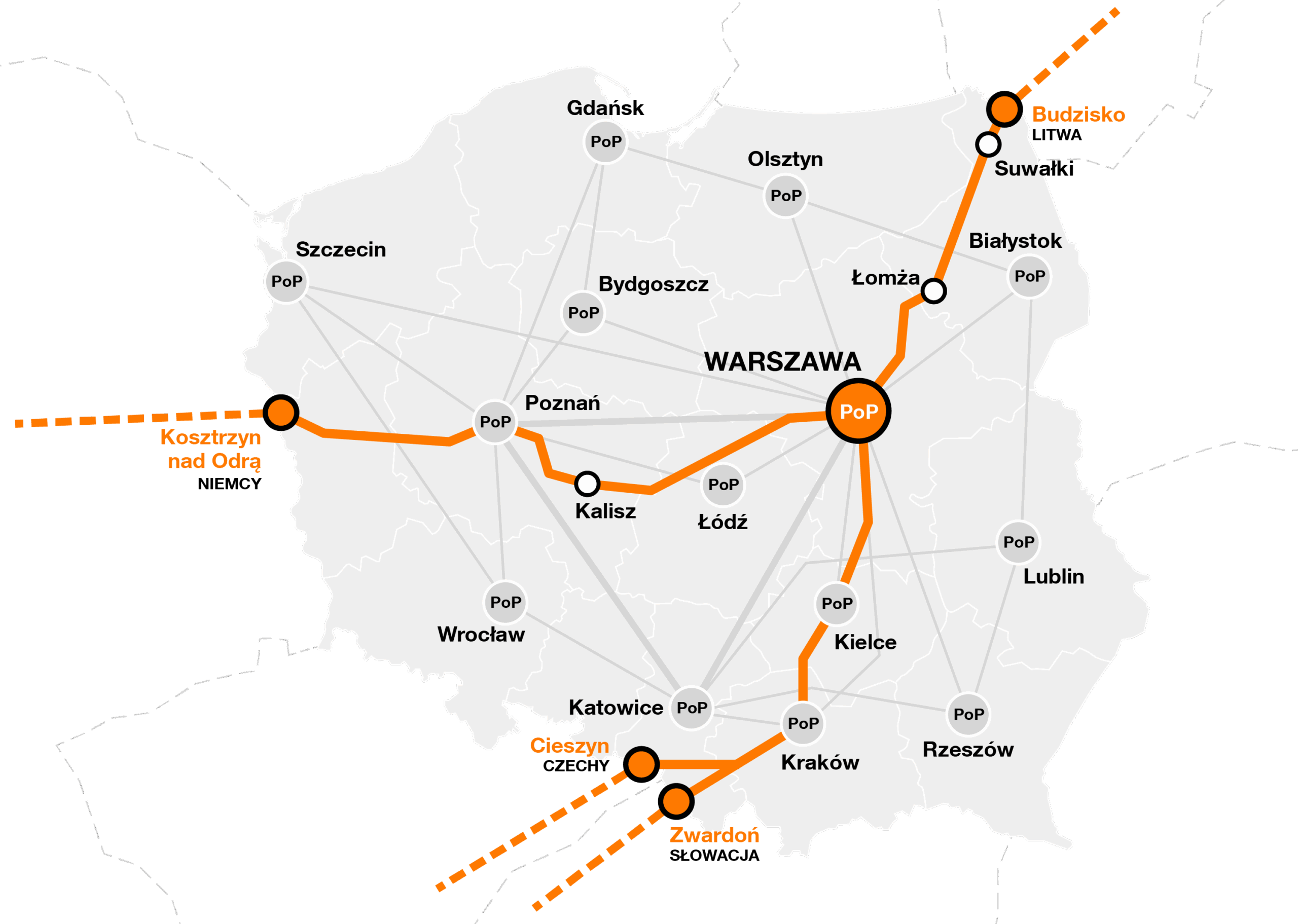 Blisko 800 km nowej, wyjątkowej sieci światłowodowej, dzięki której uzyskasz możliwość zestawienia połączeń pomiędzy głównymi miastami w kraju oraz połączeń transgranicznych.
